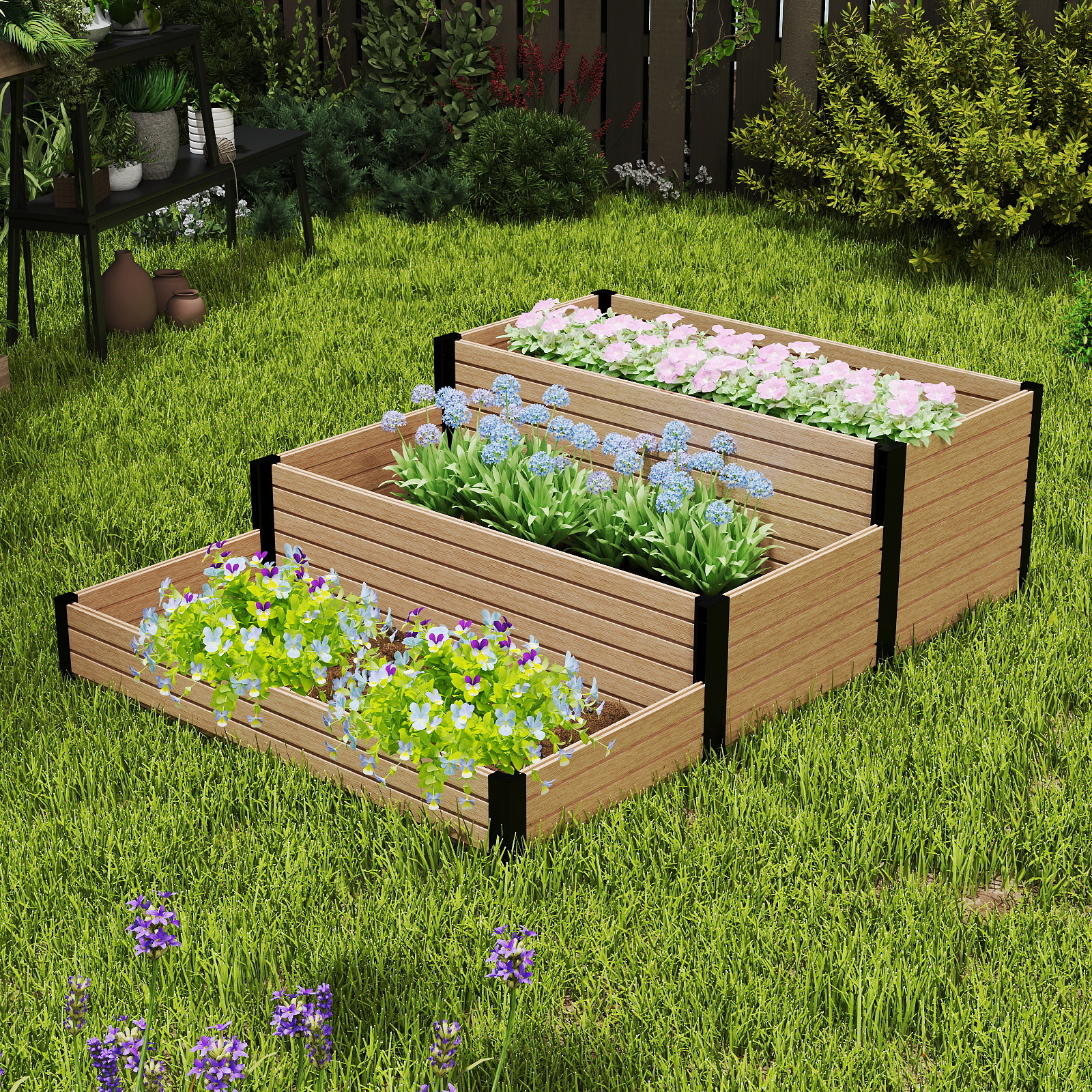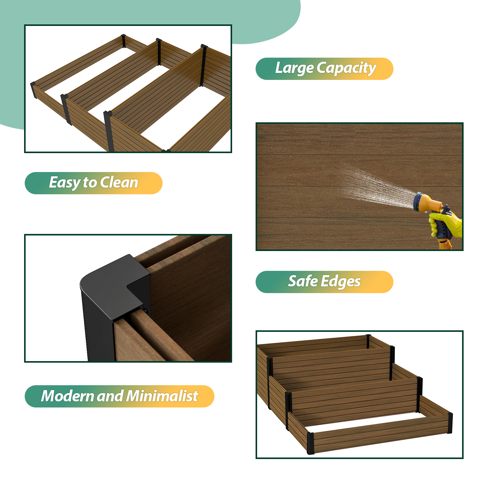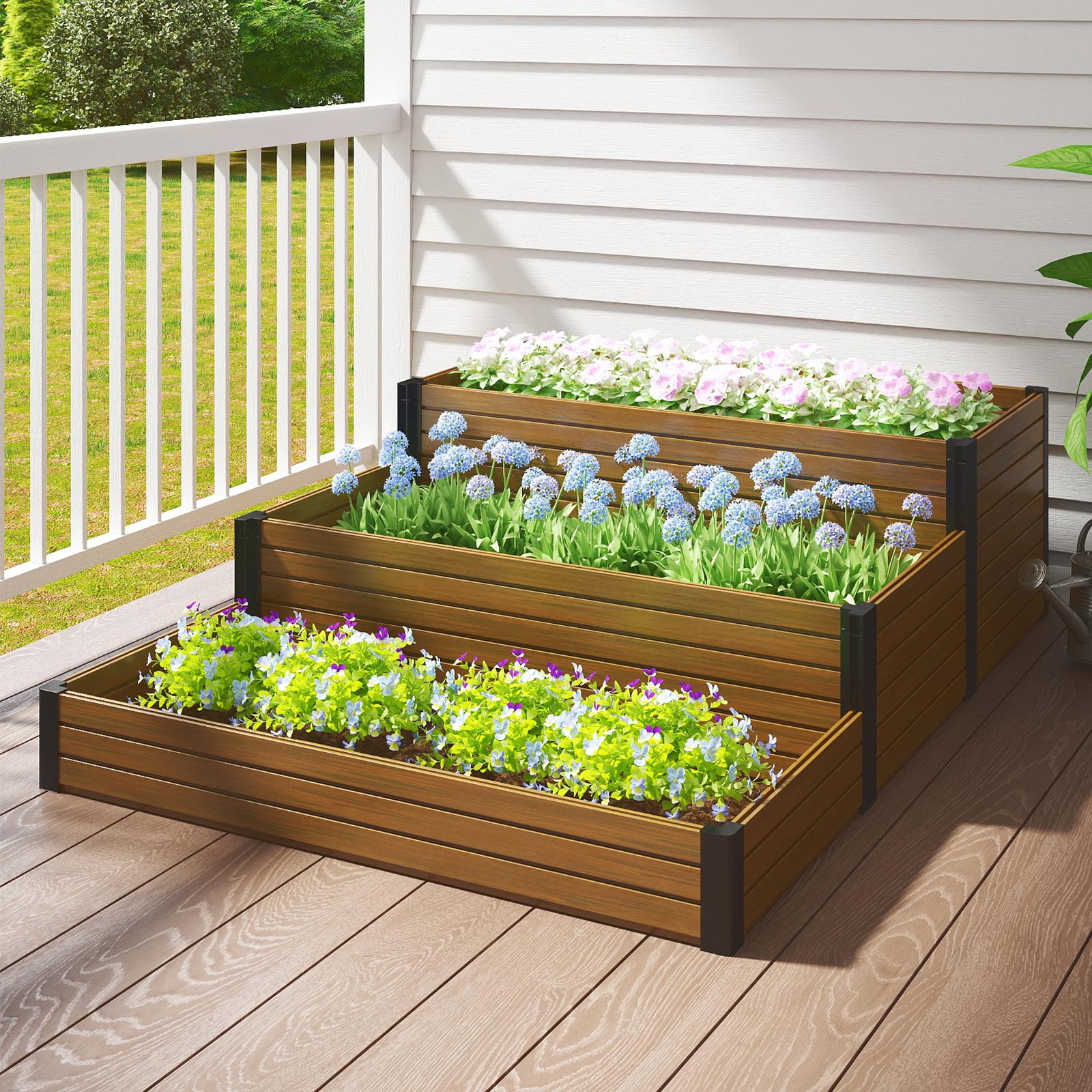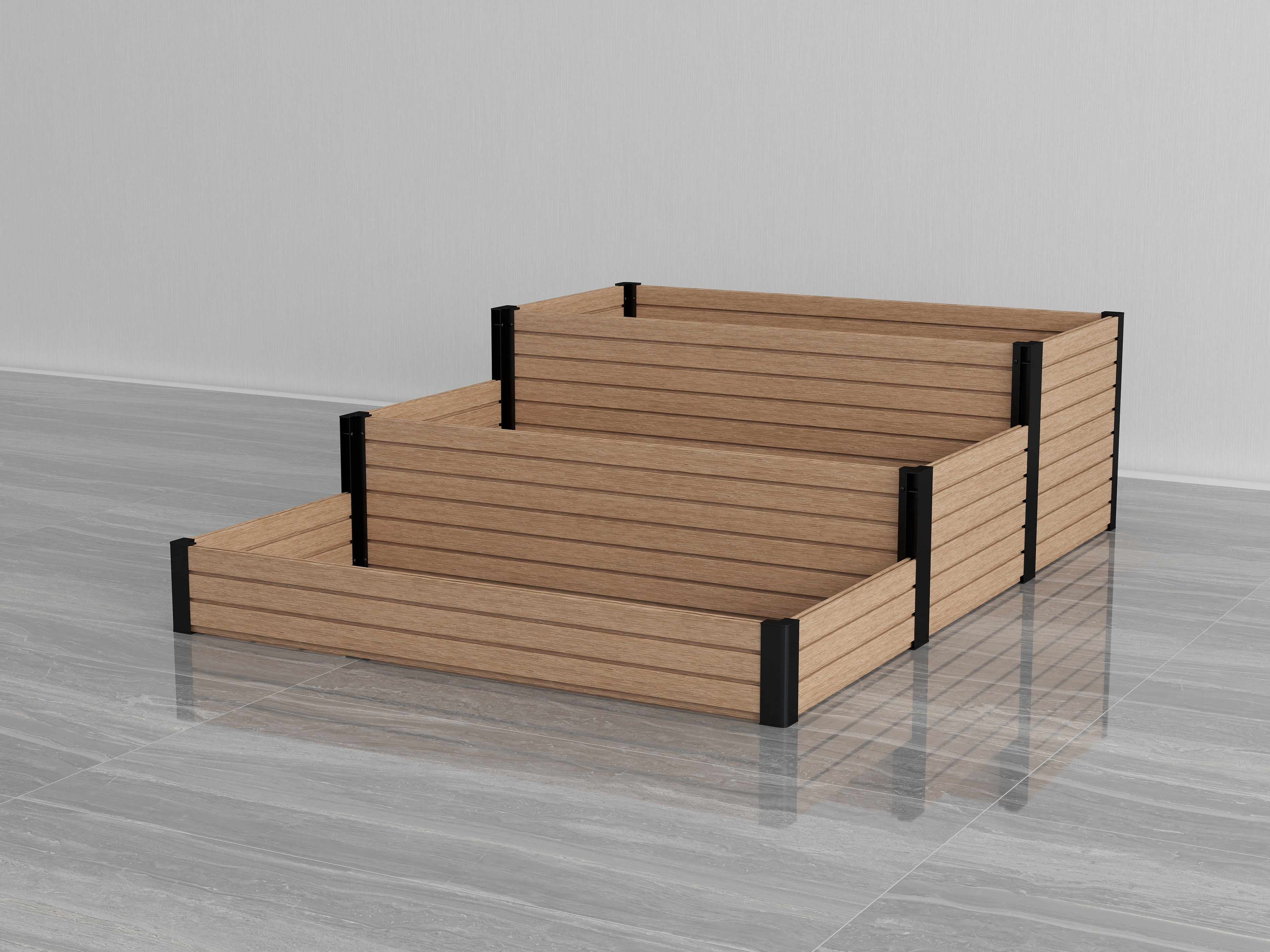 Sturdy & Durable Construction: Made with eco-friendly, weather-resistant composite wood and black steel corners, ensuring a long-lasting, rust-resistant solution for your outdoor garden.
