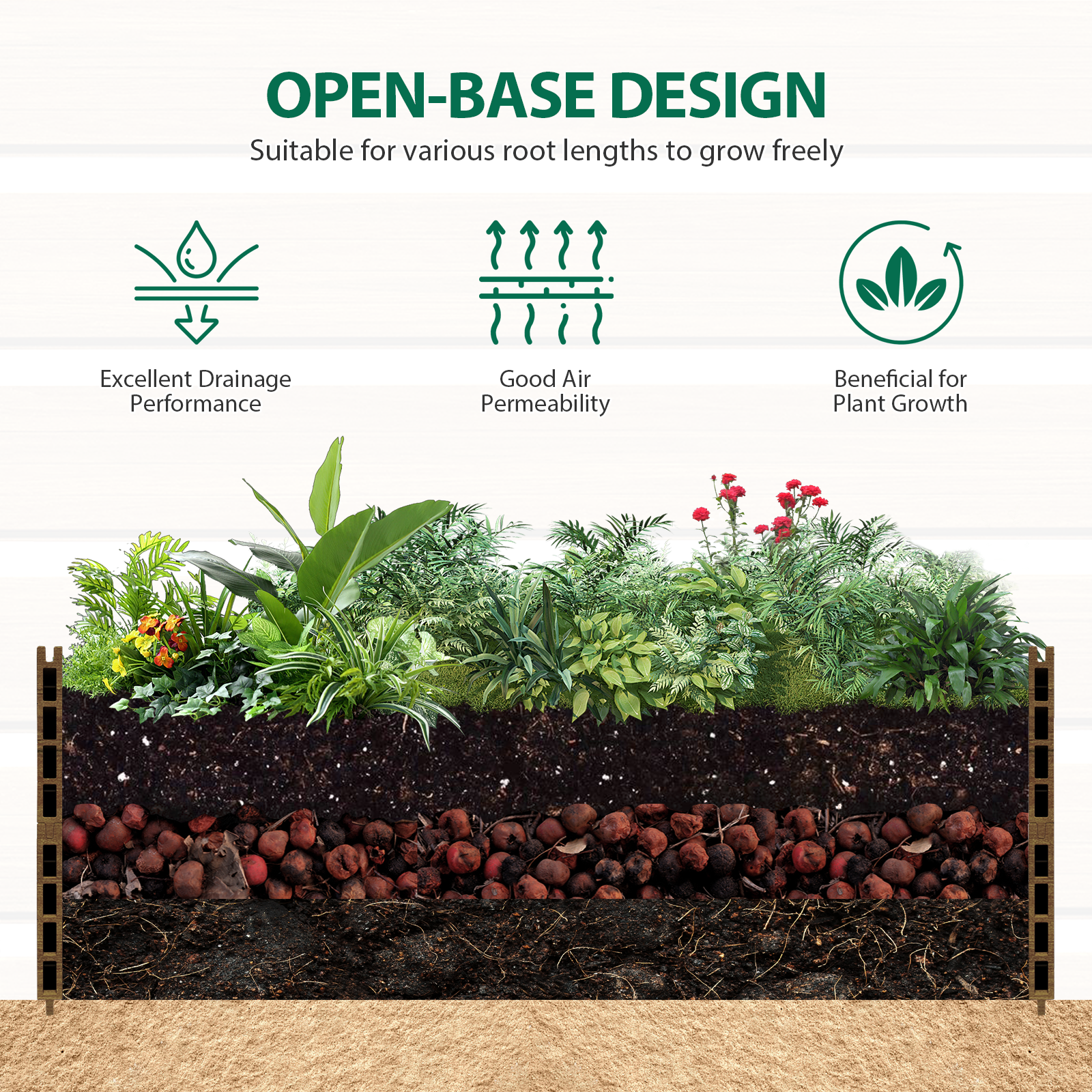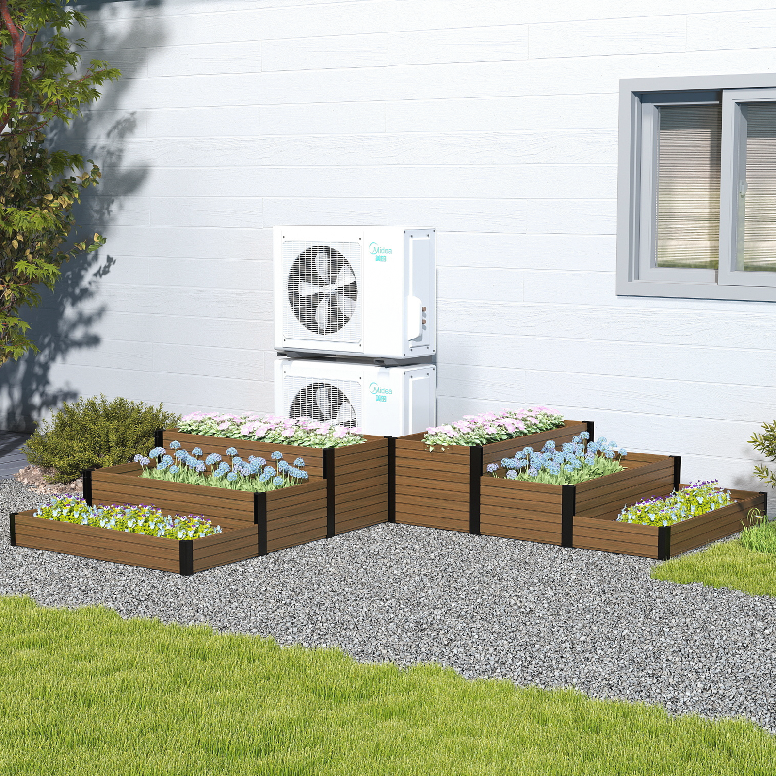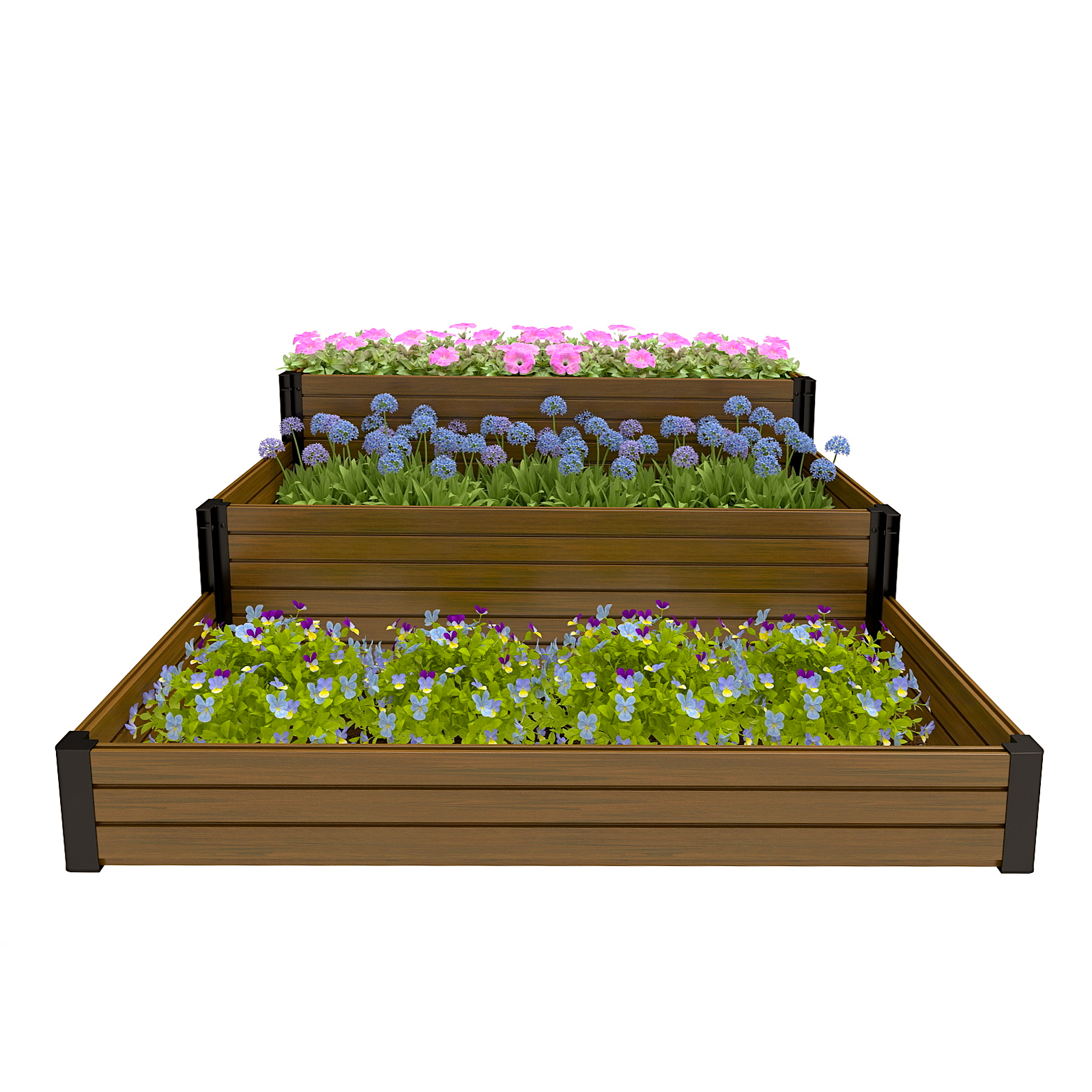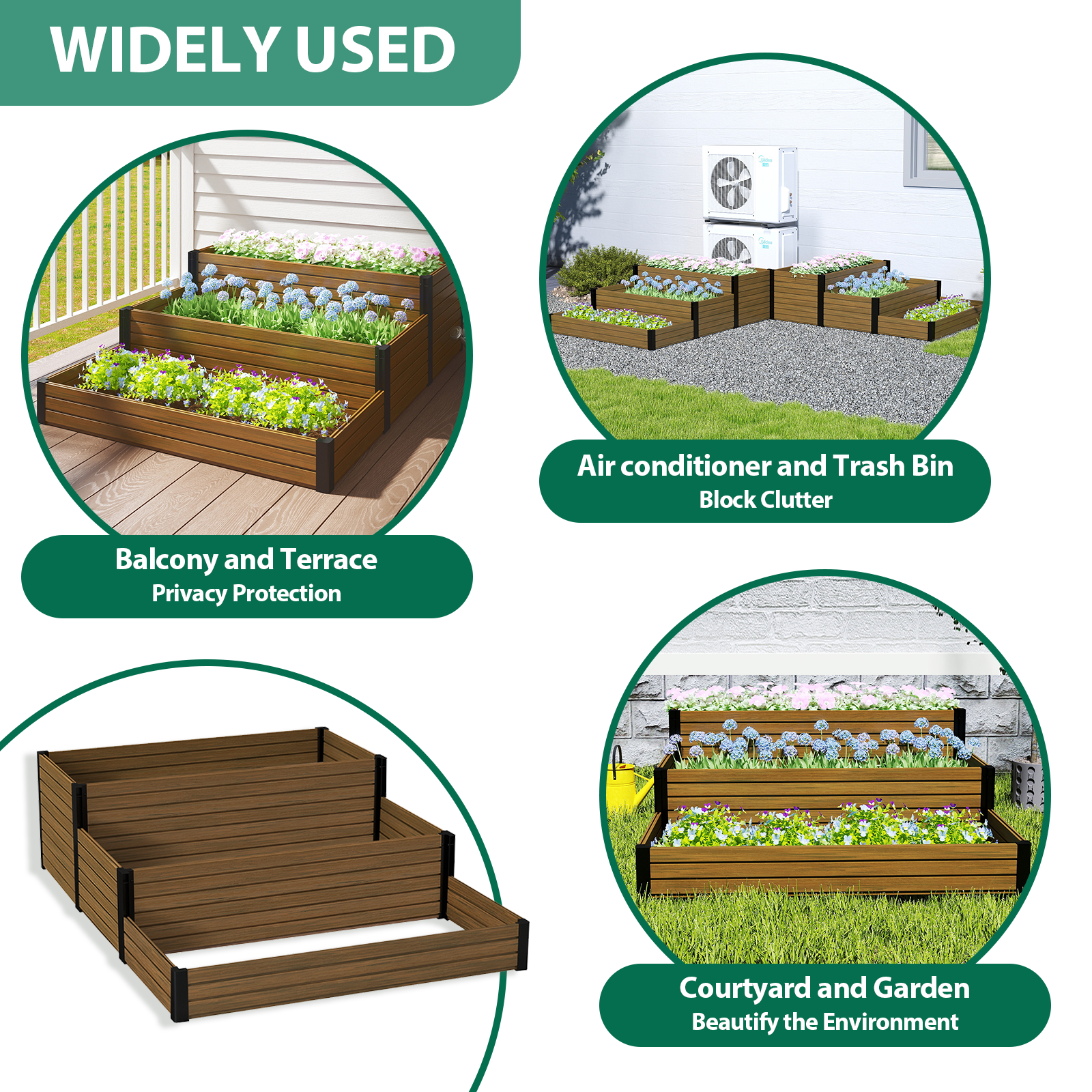 Sturdy & Durable Construction: Made with eco-friendly, weather-resistant composite wood and black steel corners, ensuring a long-lasting, rust-resistant solution for your outdoor garden.