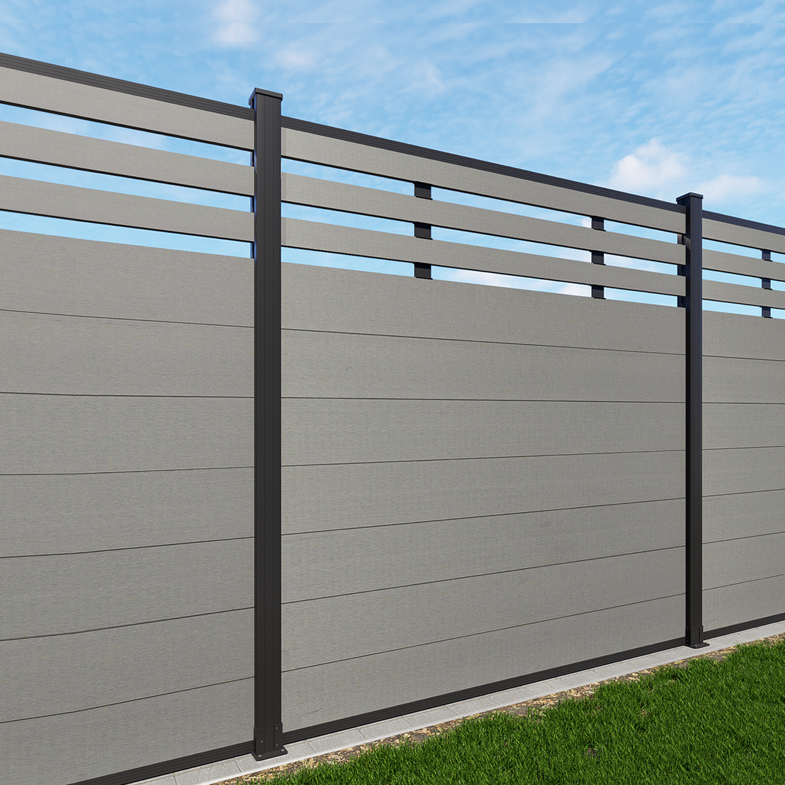 Our 20mm thick premium composite fence slats in 5 colors, paired with top-quality aluminium fence posts, offer a stylish, flexible, and sustainable fencing solution. This eco-friendly fence is responsibly sourced, highly durable, low-maintenance, and never needs painting.
