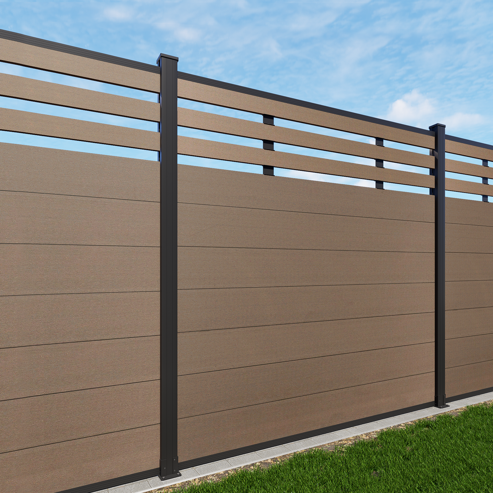 Mondaria Outdoor Lattice Top Composite Privacy Fence – Brushed Finish Panels with 6ft Ground Post