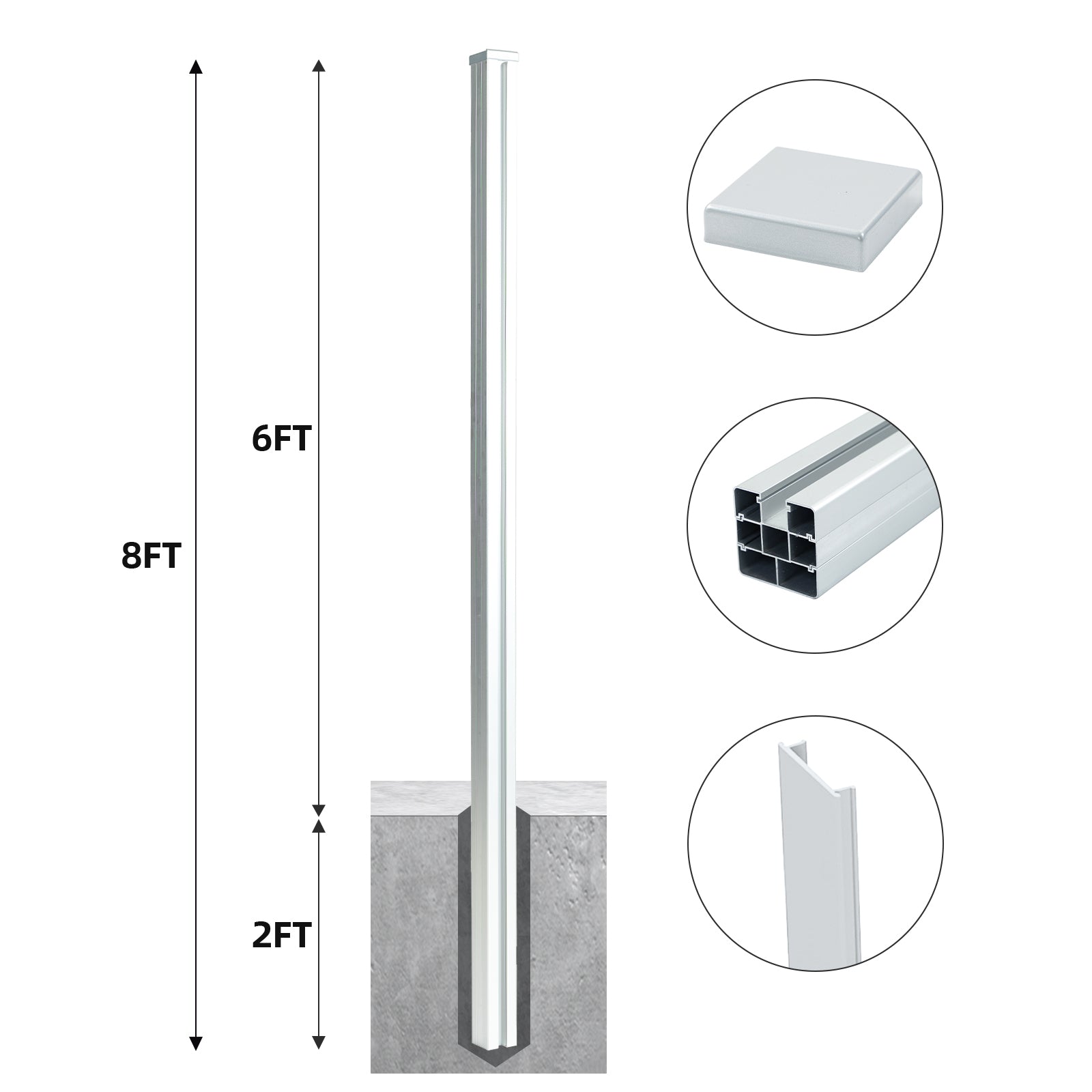 8 Ft Silver In-Ground Fence Post - Set of 1 (Pour Installation)