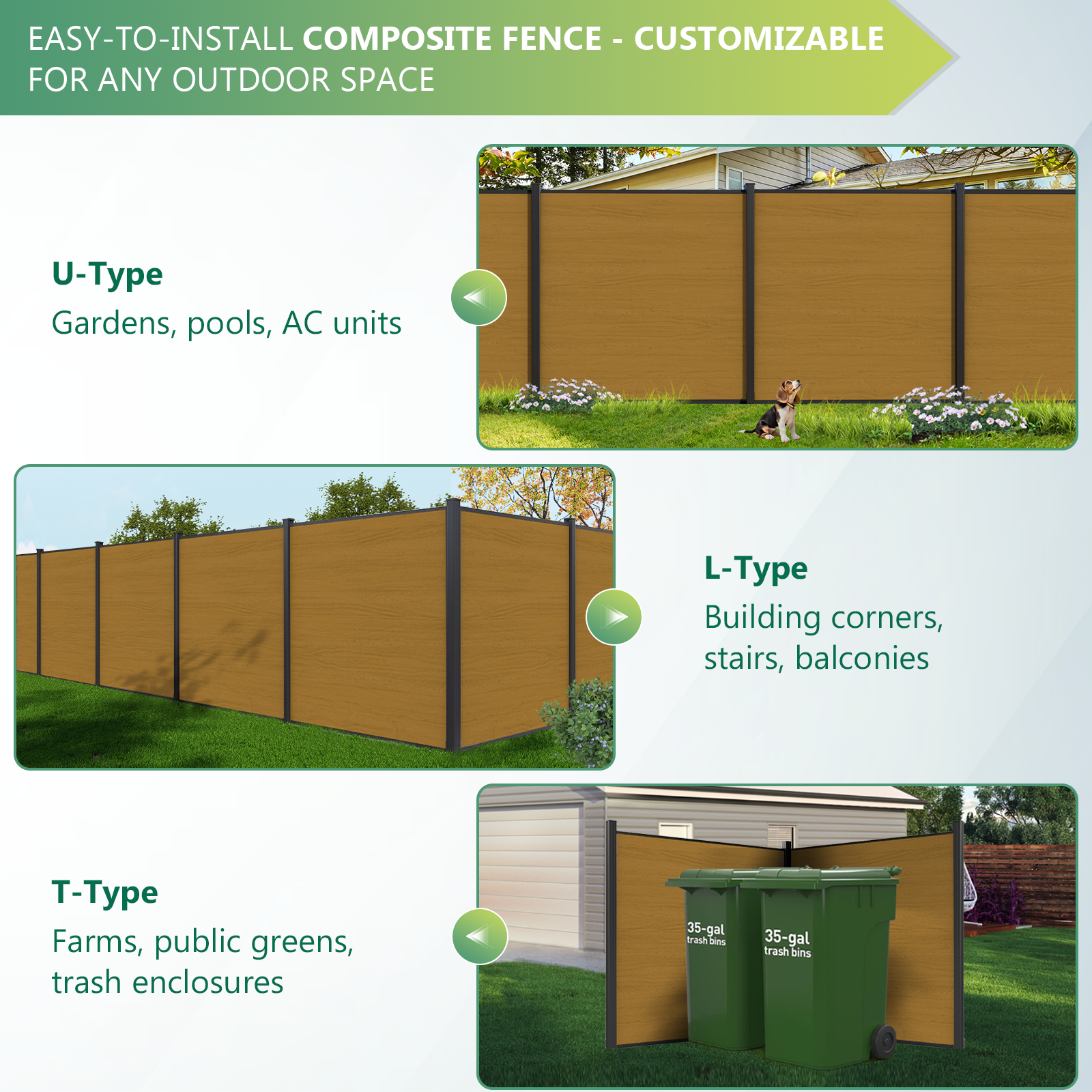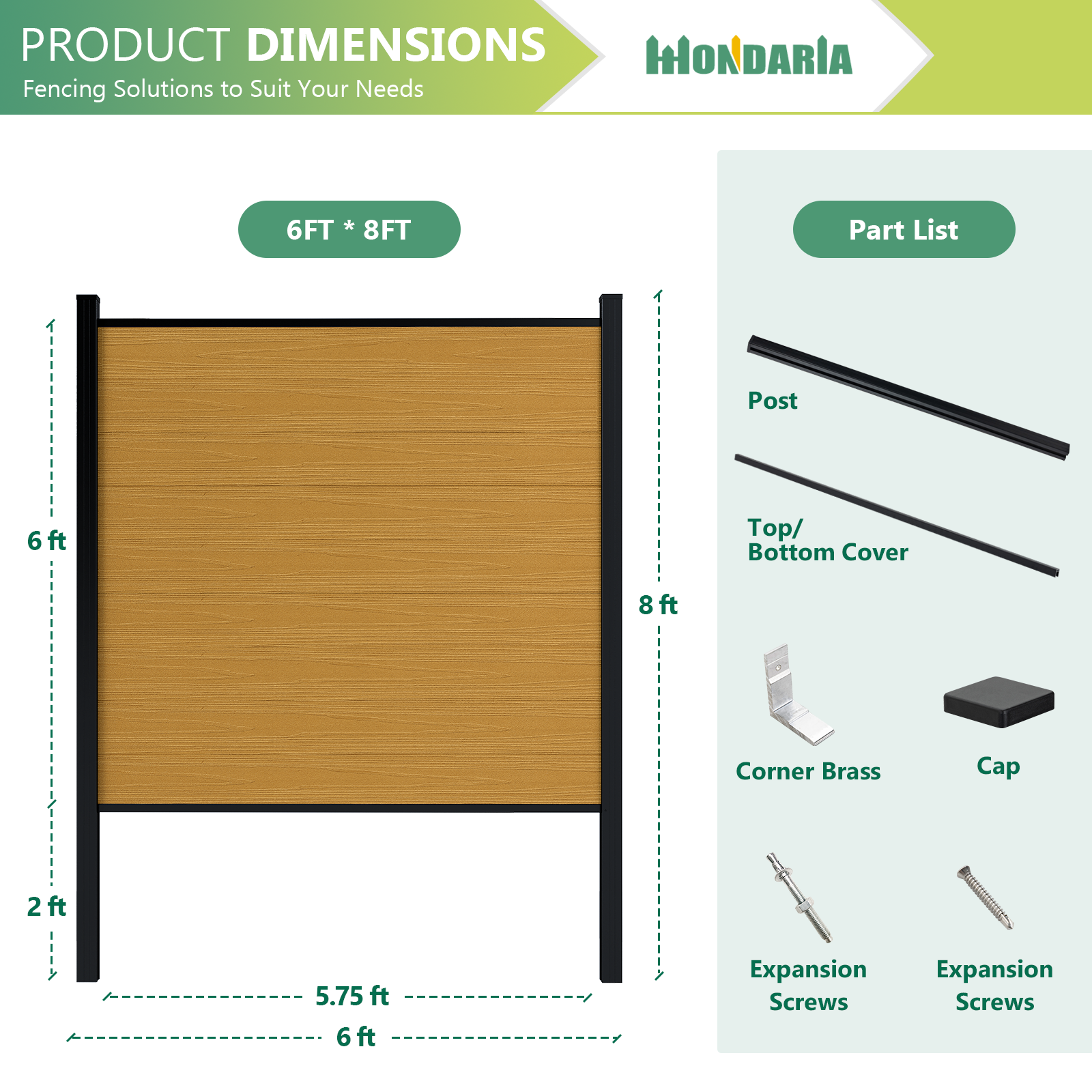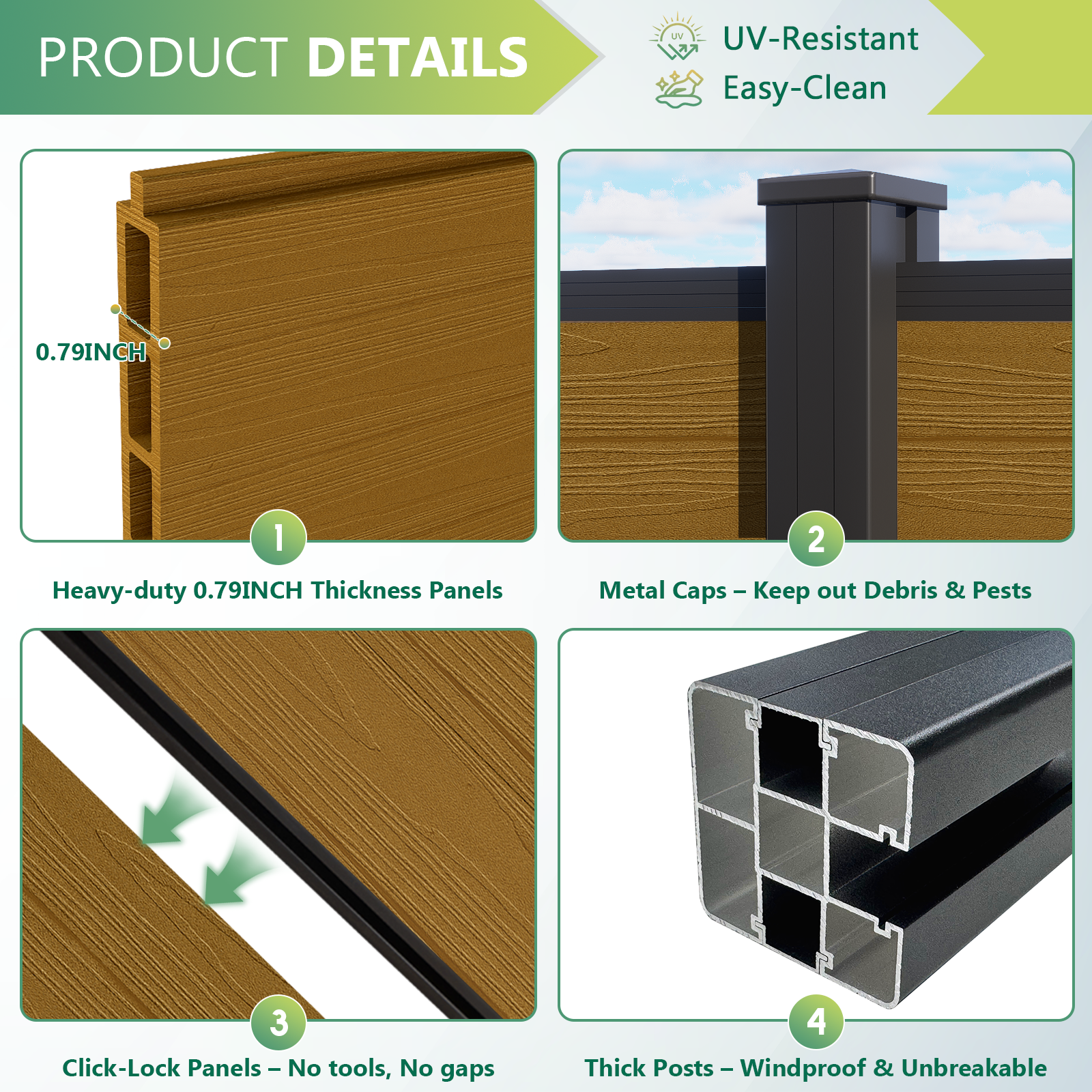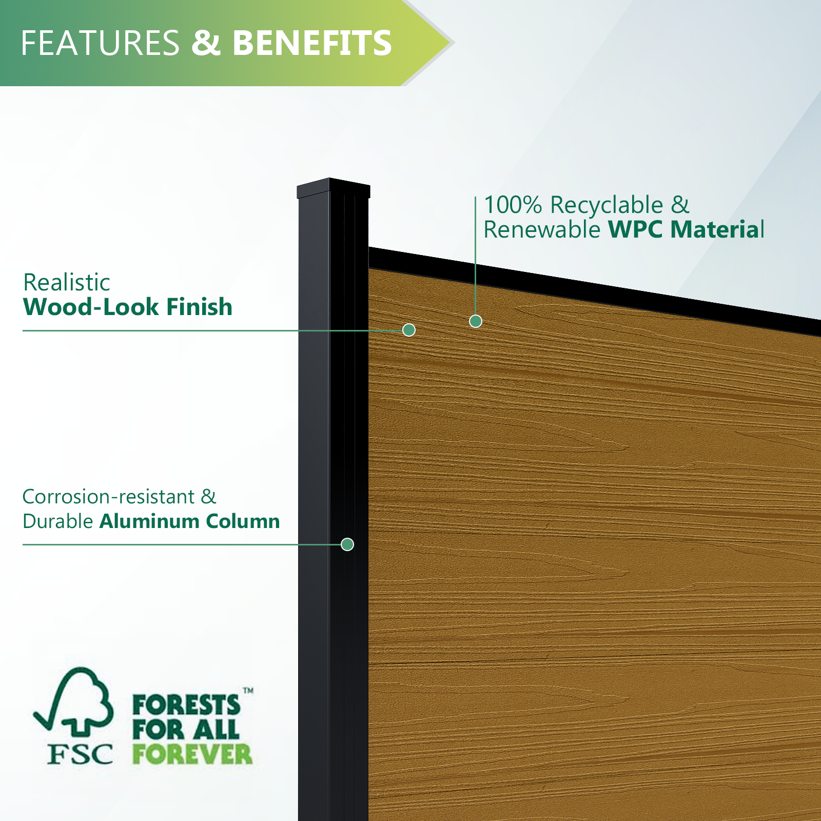 Mondaria Composite Privacy Fence(with 8ft post) – | Weather-Resistant, Low Maintenance Fencing (Antique Wood, Silver Gray, Golden Teak)