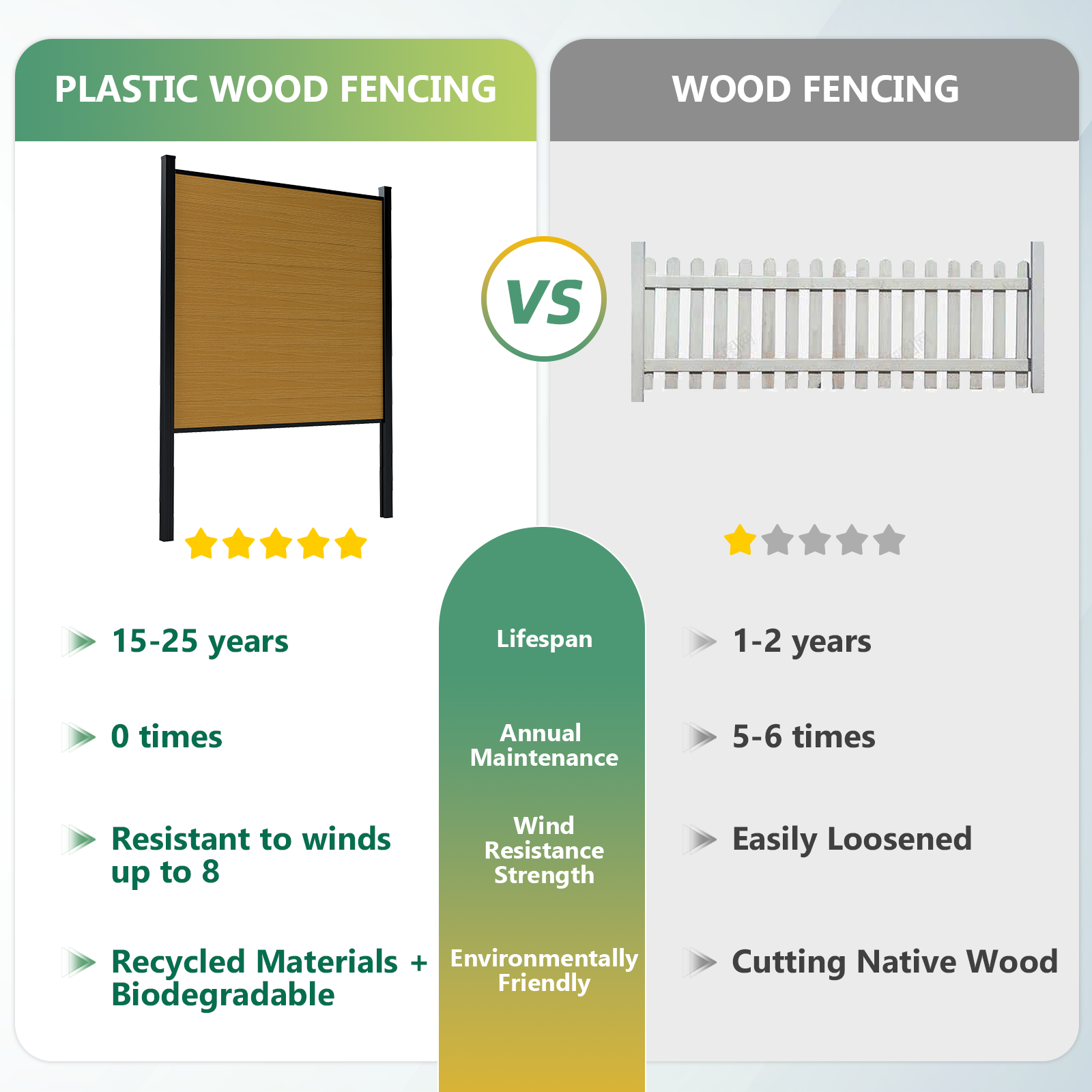 Upgrade your yard with our modern composite privacy fence panels — a perfect blend of natural wood appearance and weather-resistant durability. Each panel measures 6 feet wide and is built with 9 interlocking composite boards, delivering reliable strength and a clean, stylish look.