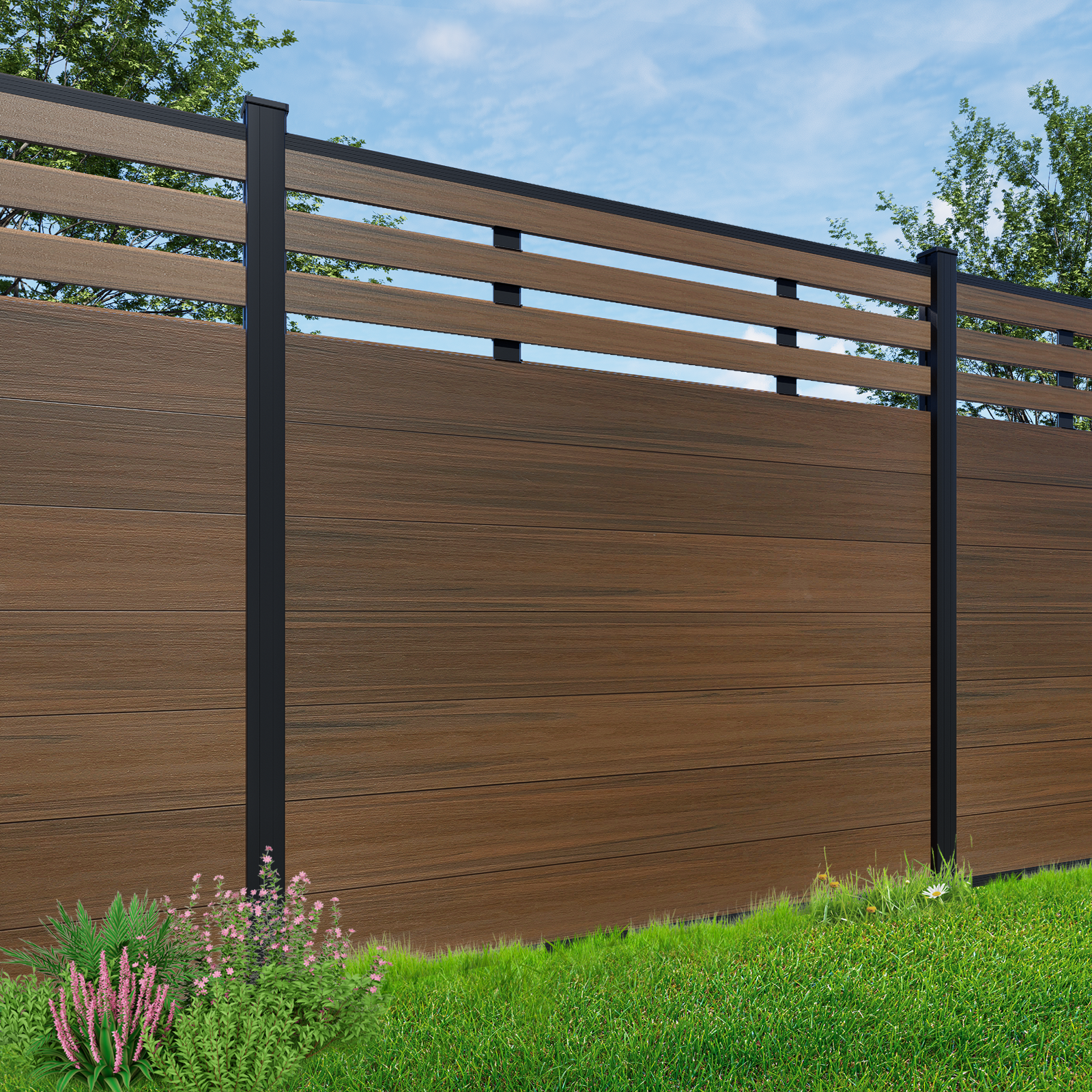 Our 20mm thick premium composite fence slats in 5 colors, paired with top-quality aluminium fence posts, offer a stylish, flexible, and sustainable fencing solution. This eco-friendly fence is responsibly sourced, highly durable, low-maintenance, and never needs painting.