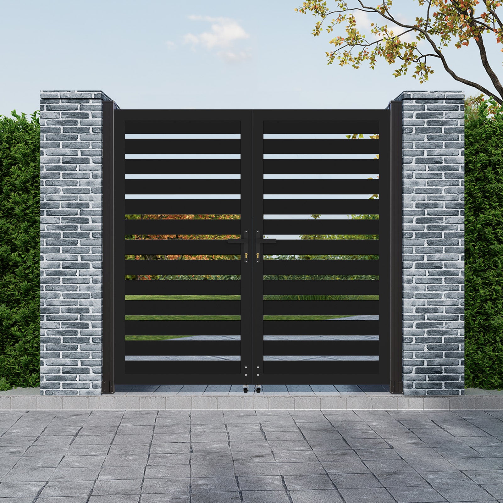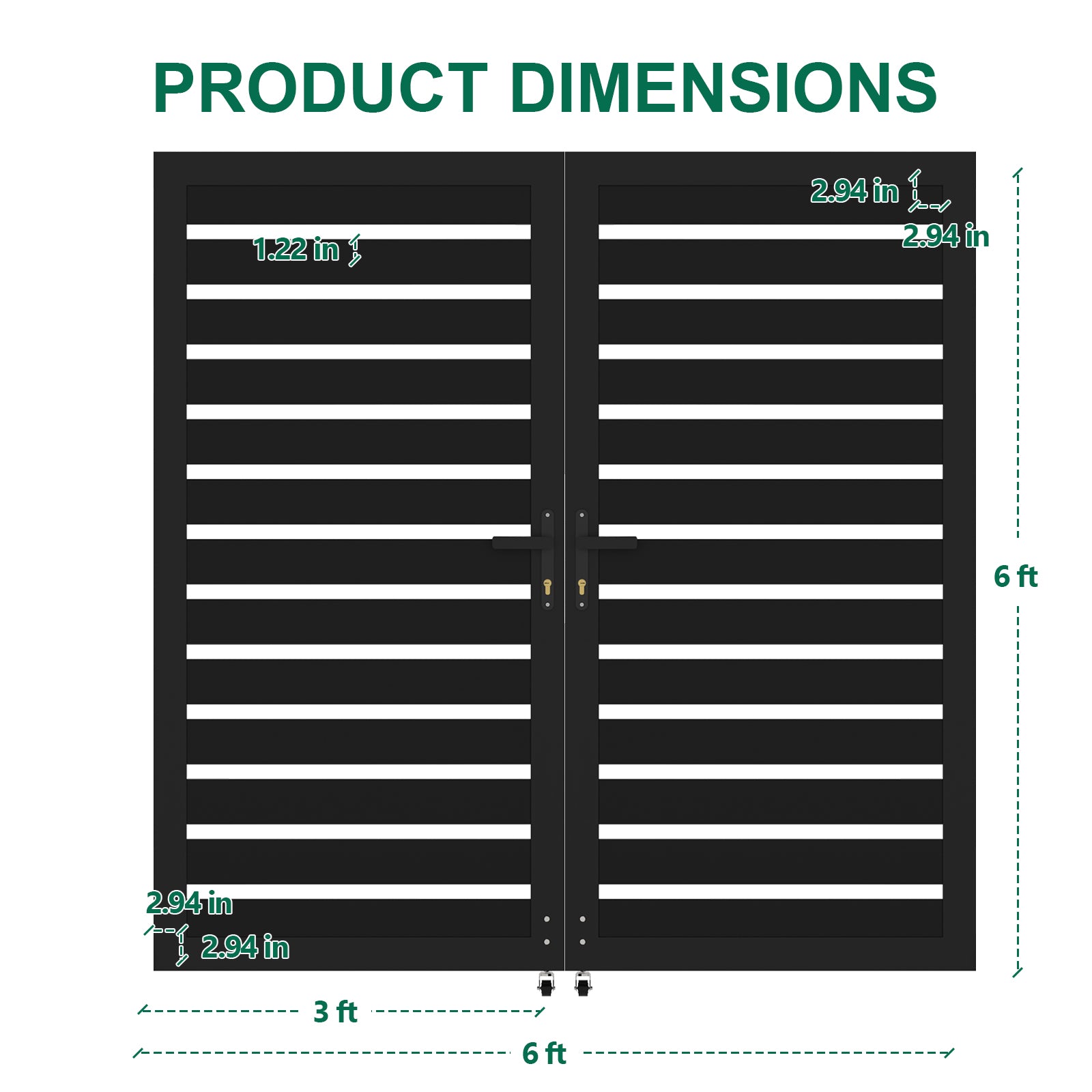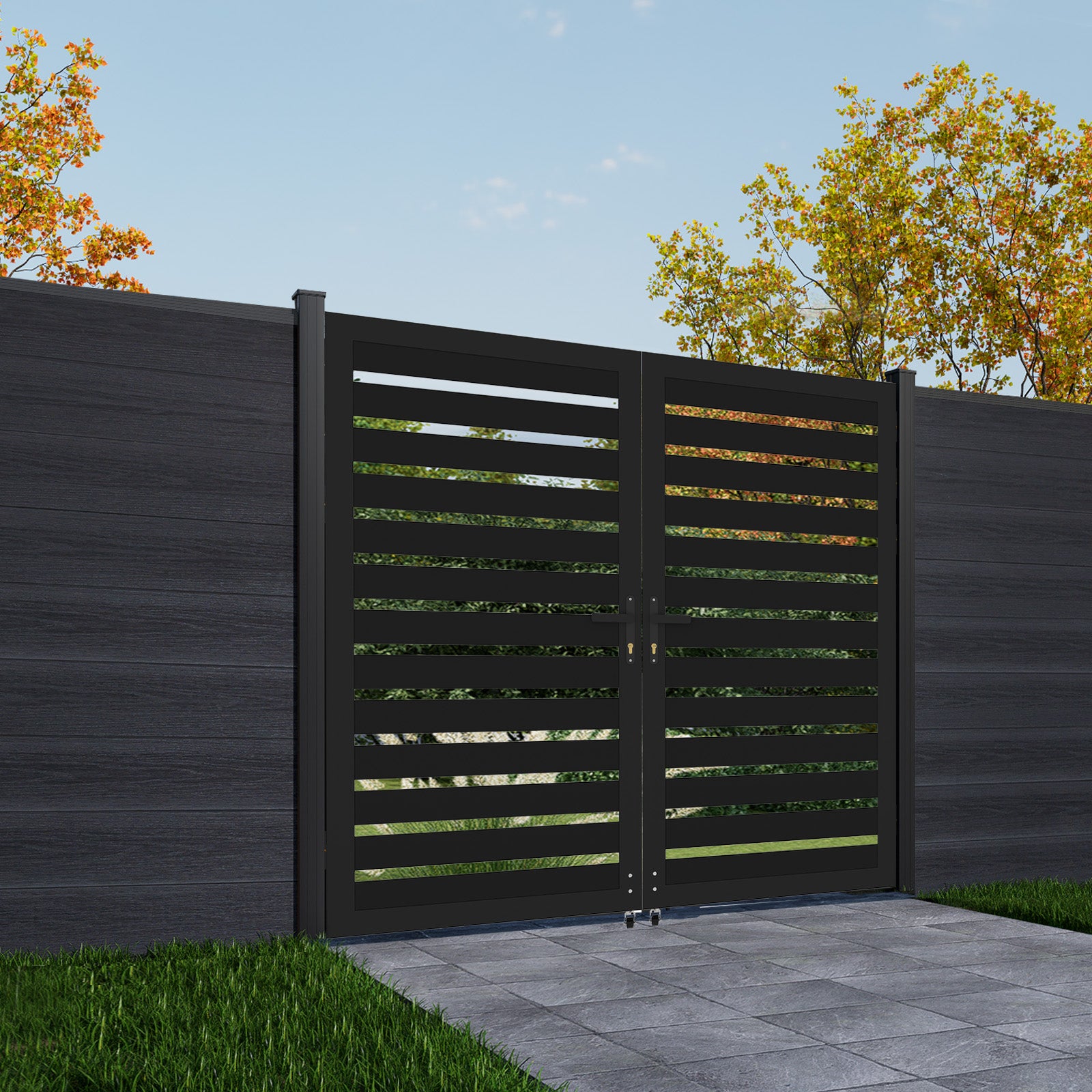 6ft × 6ft Aluminum Full-Privacy Slatted Double Swing Gate | Modern, Durable, Low-Maintenance