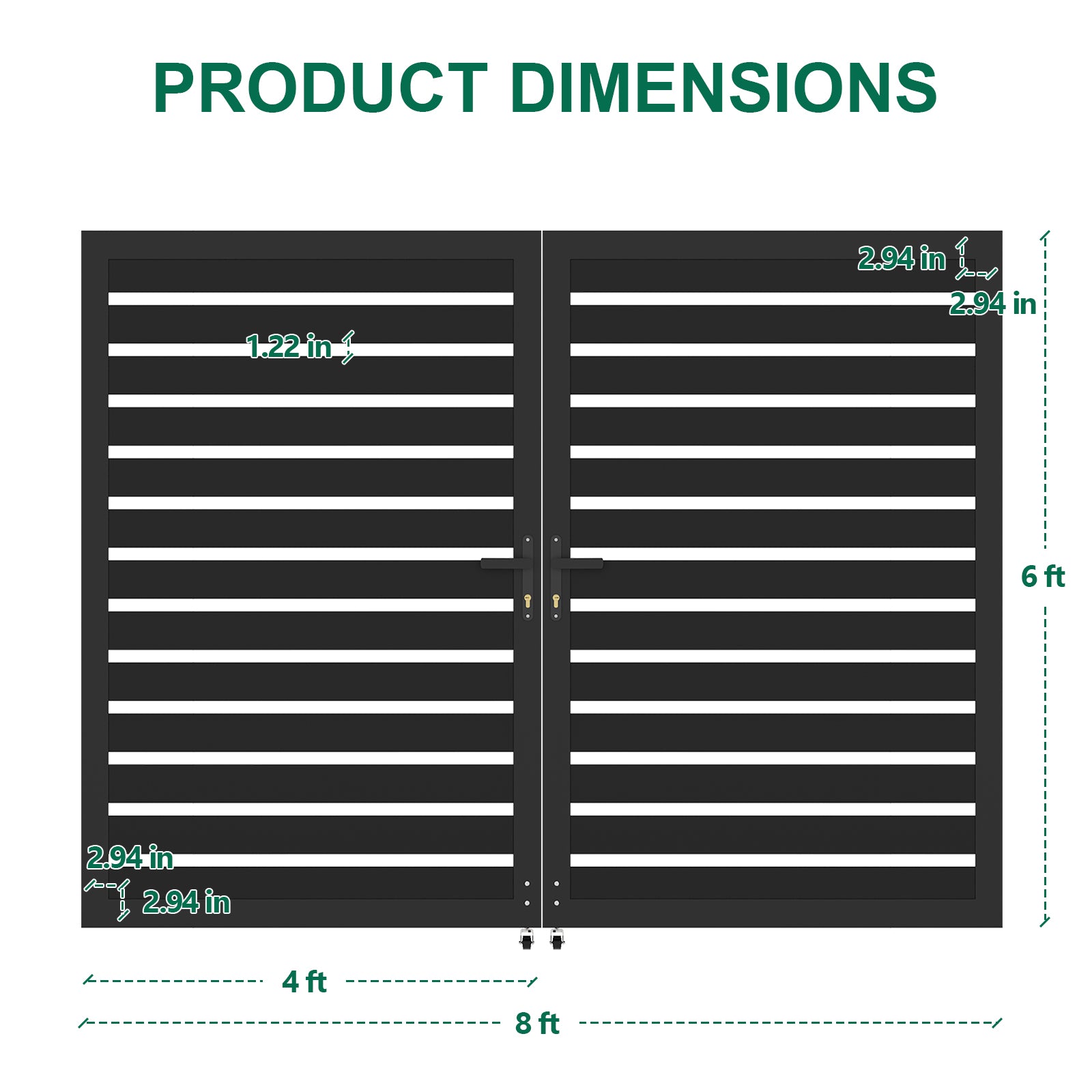 6ft × 8ft Aluminum Full-Privacy Slatted Double Swing Gate | Modern, Durable, Low-Maintenance
