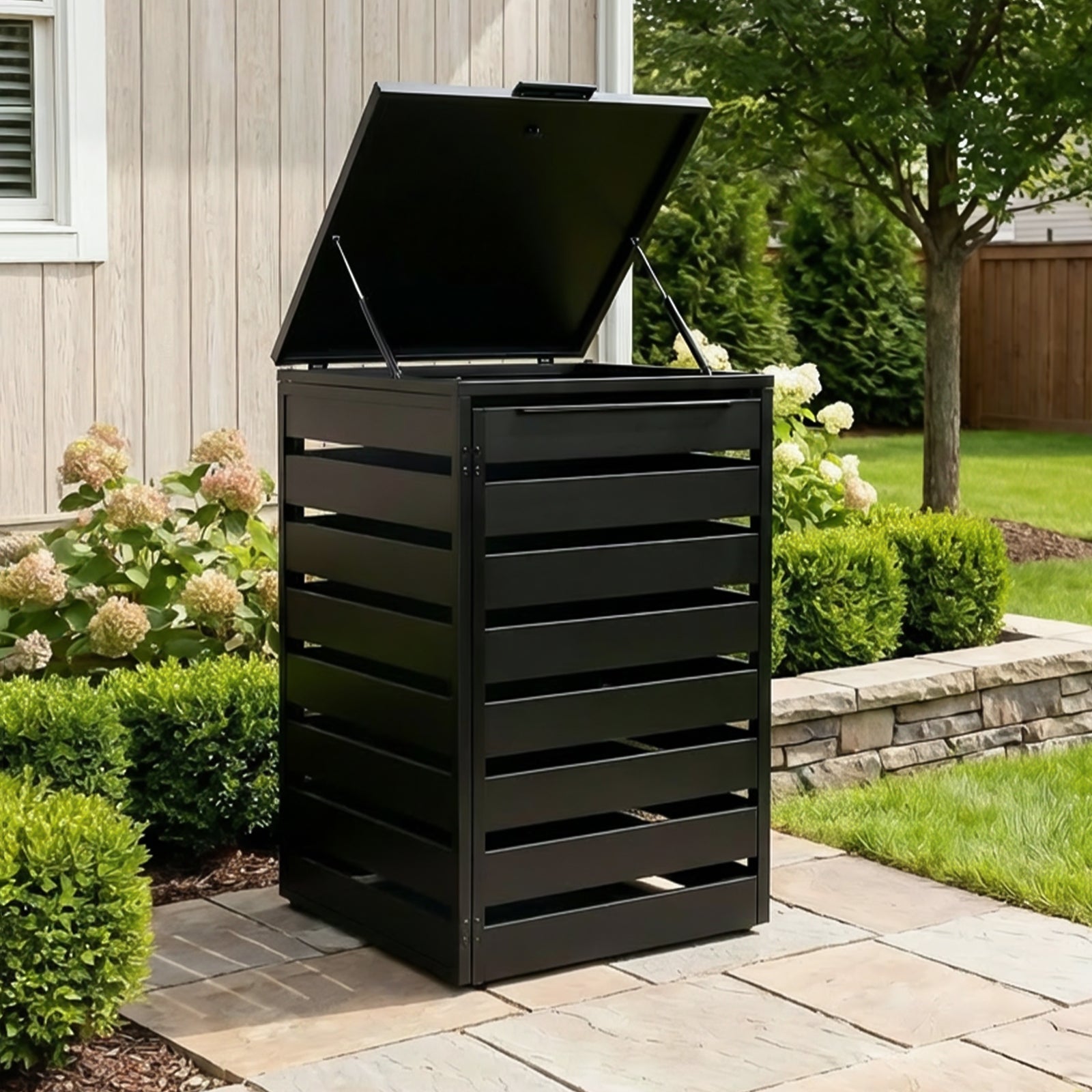 Keep your outdoor space clean, organized, and visually appealing with the Mondaria Aluminum Trash Can Enclosure. Designed for modern homes, this sleek enclosure hides unsightly trash and recycling bins while allowing proper airflow and easy access.