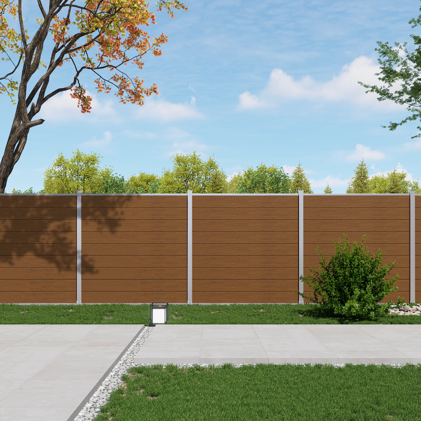 Our 20mm thick premium composite fence slats in 5 colors, paired with top-quality aluminium fence posts, offer a stylish, flexible, and sustainable fencing solution. This eco-friendly fence is responsibly sourced, highly durable, low-maintenance, and never needs painting.