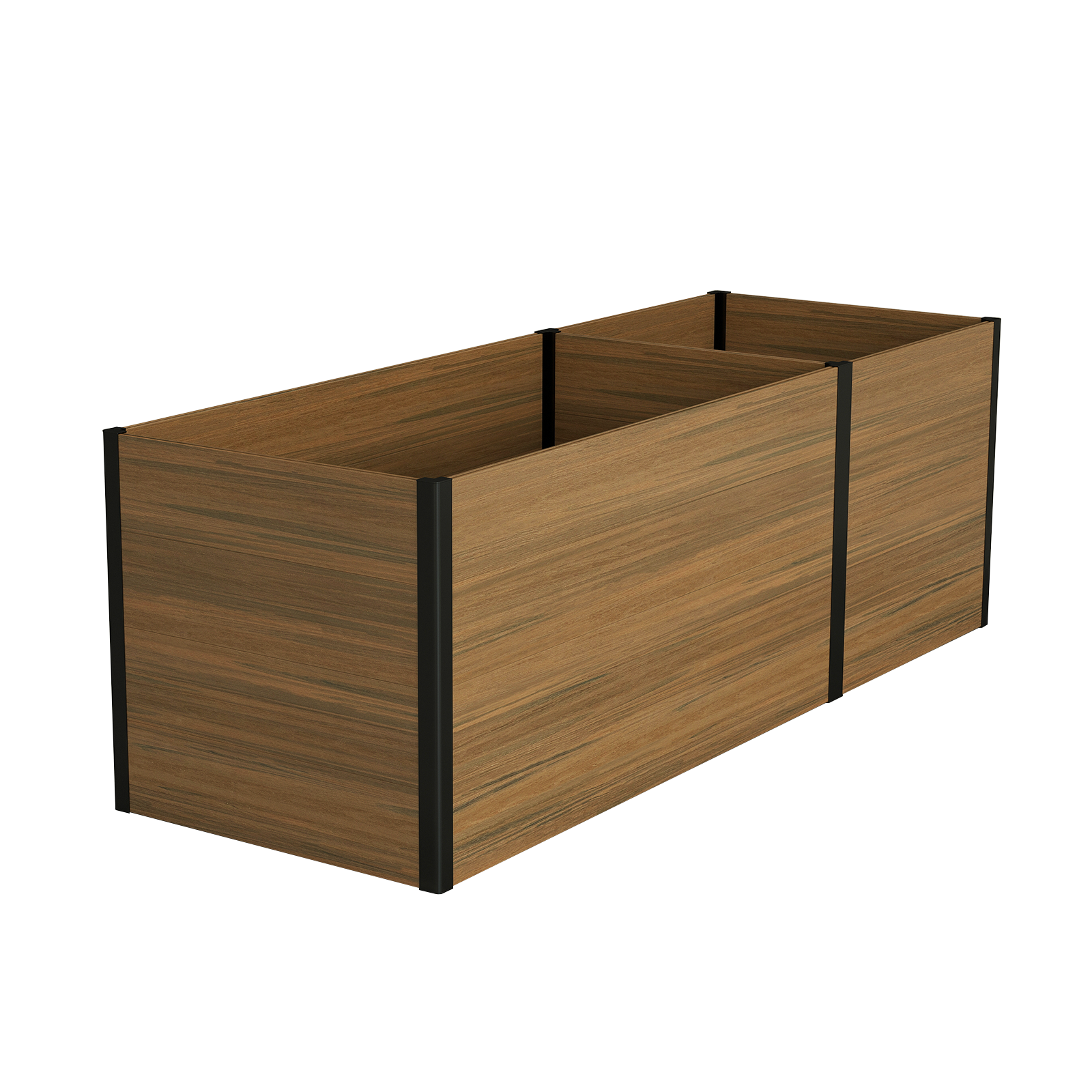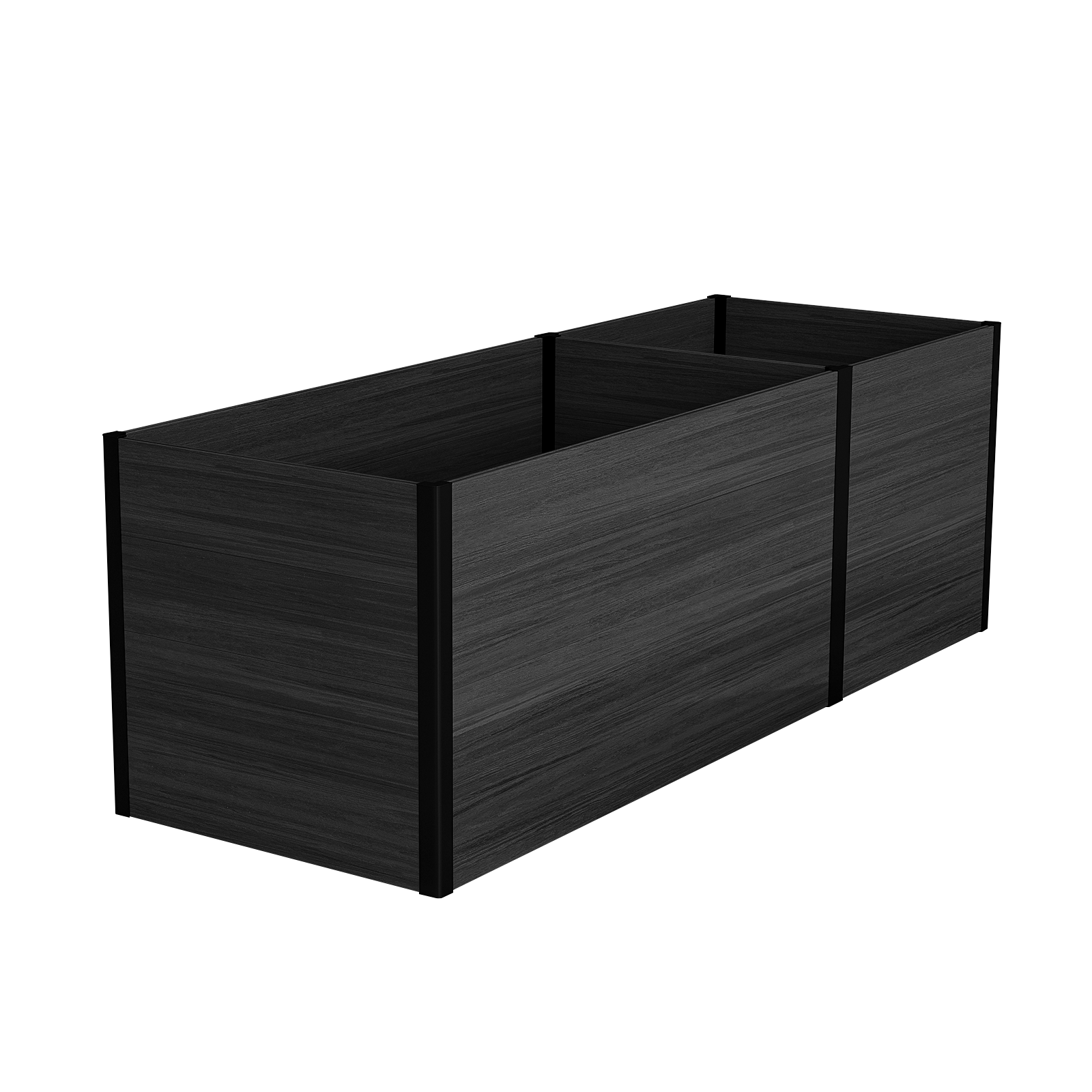 Durable & Weather-Resistant Materials: Constructed from eco-friendly composite wood panels and black aluminum corners, this planter system is built to withstand the elements, offering long-lasting durability and minimal maintenance year-round.