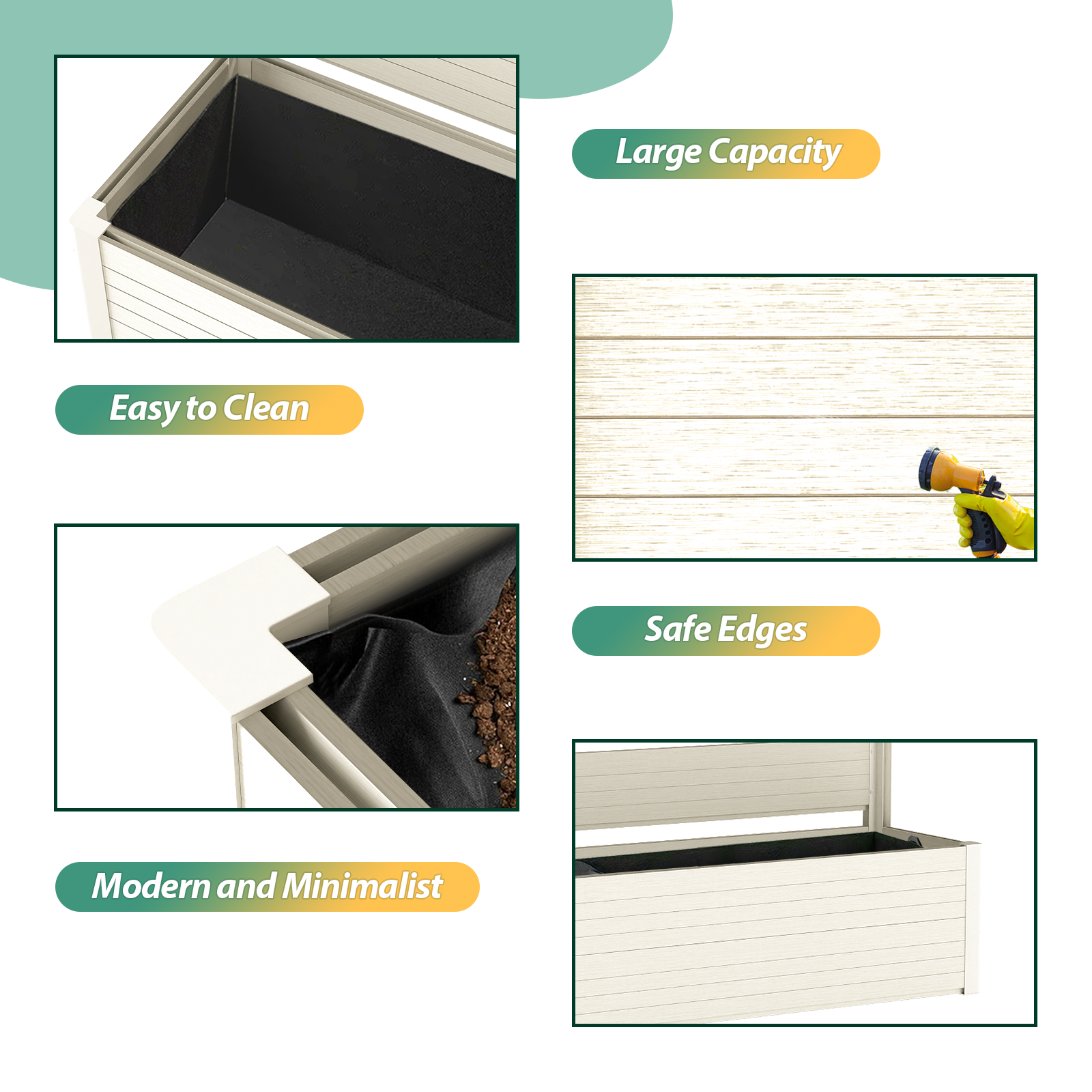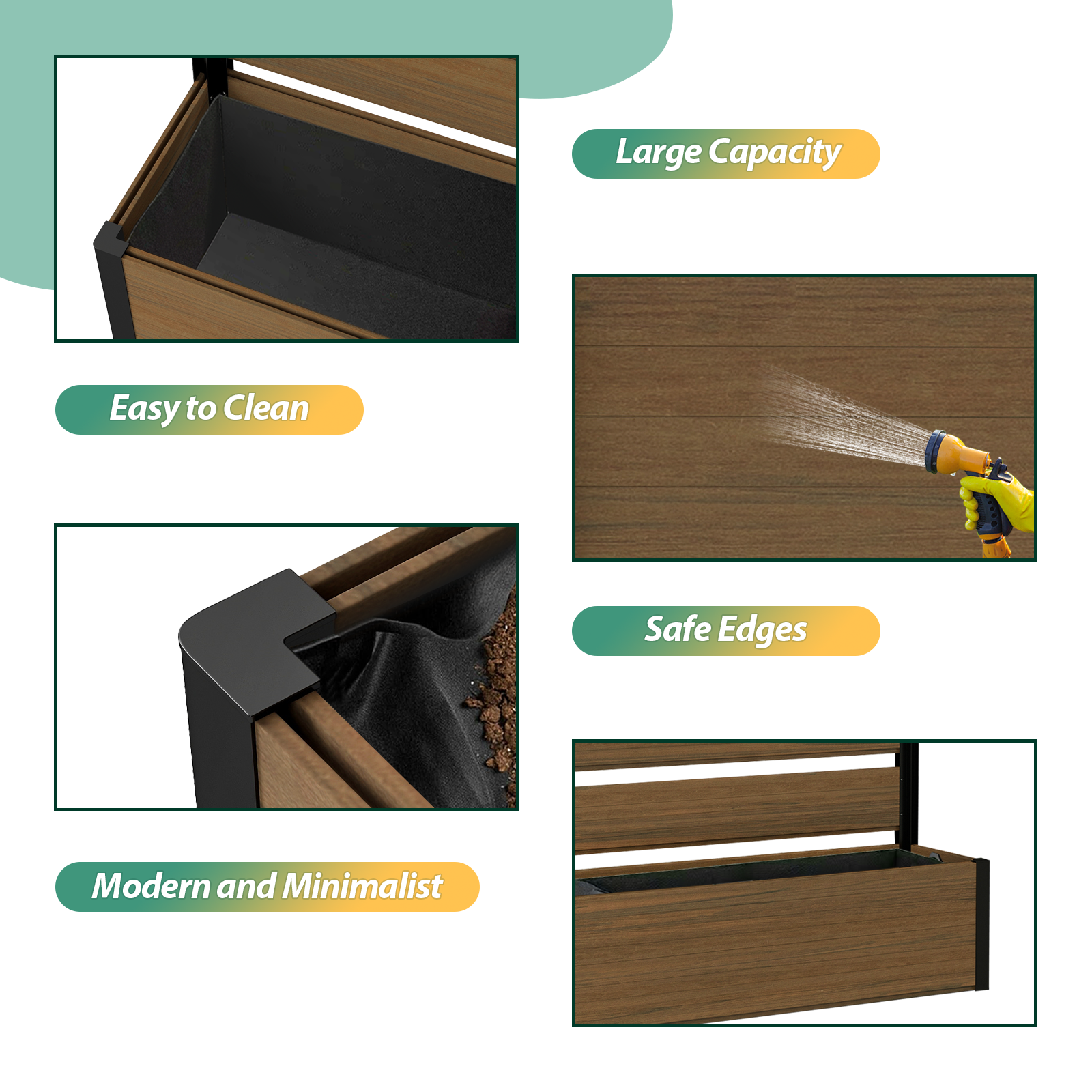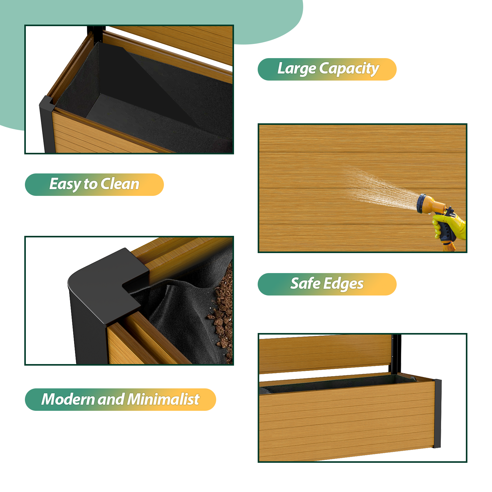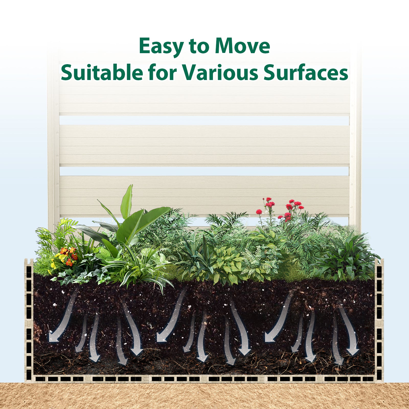 Durable & Long-Lasting: Crafted with weather-resistant composite wood and high-quality aluminum, this planter bed is built to withstand the elements, offering long-term durability and low maintenance. Whether in hot summers or cold winters, it will retain its beauty and function year after year.