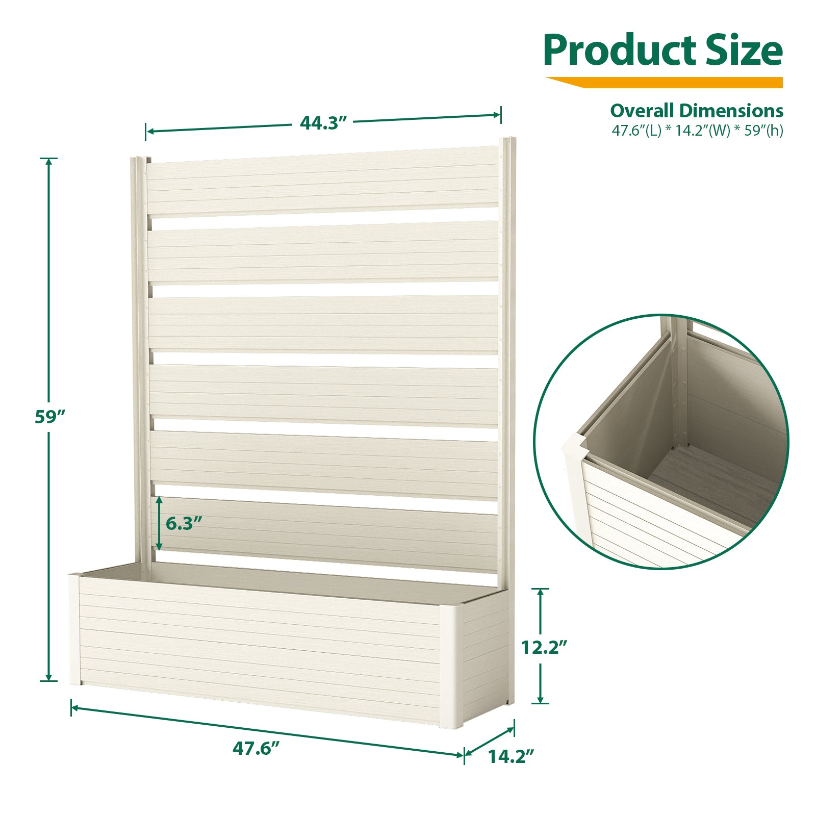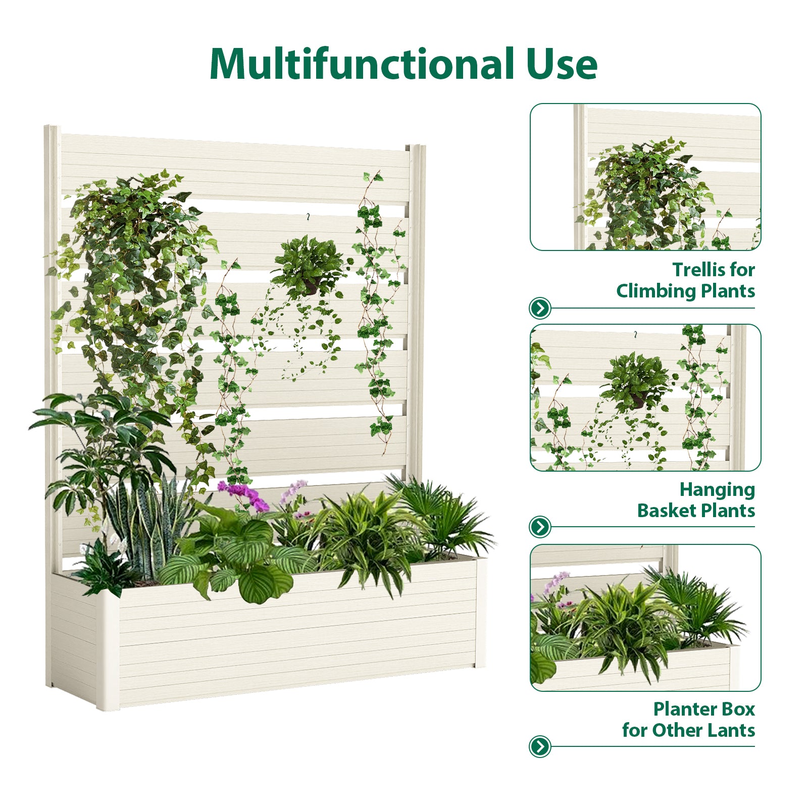 Spacious & Versatile: With generous dimensions of 47.6" x 59", this planter bed gives you ample room to plant flowers, shrubs, or small trees, allowing you to create the garden of your dreams. It's perfect for balconies, patios, and larger gardens alike.