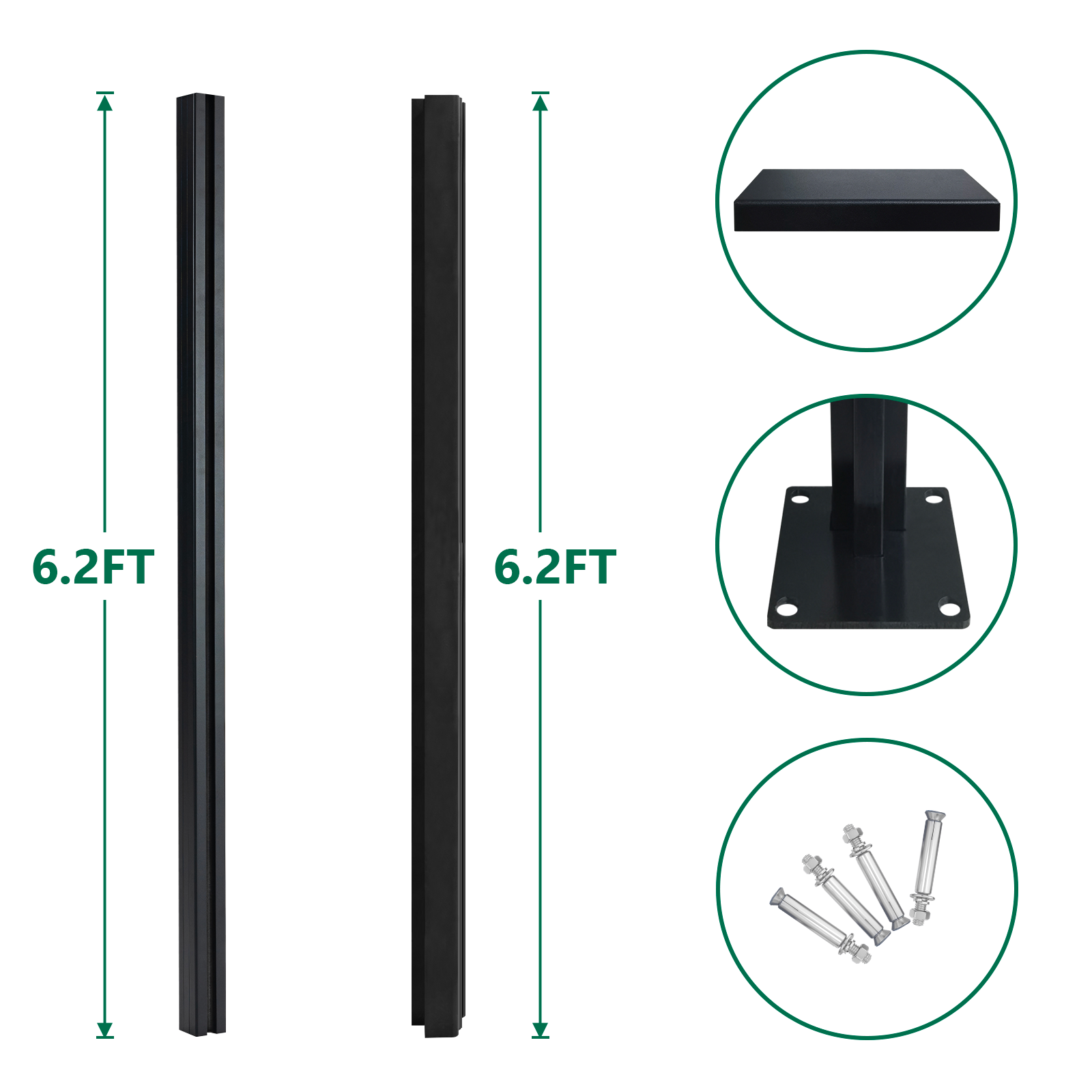 Mondaria 6ft/6.2ft Ground-Mount Corner Fence Post with Base – Adjustable Angle, Durable Composite Fence Solution