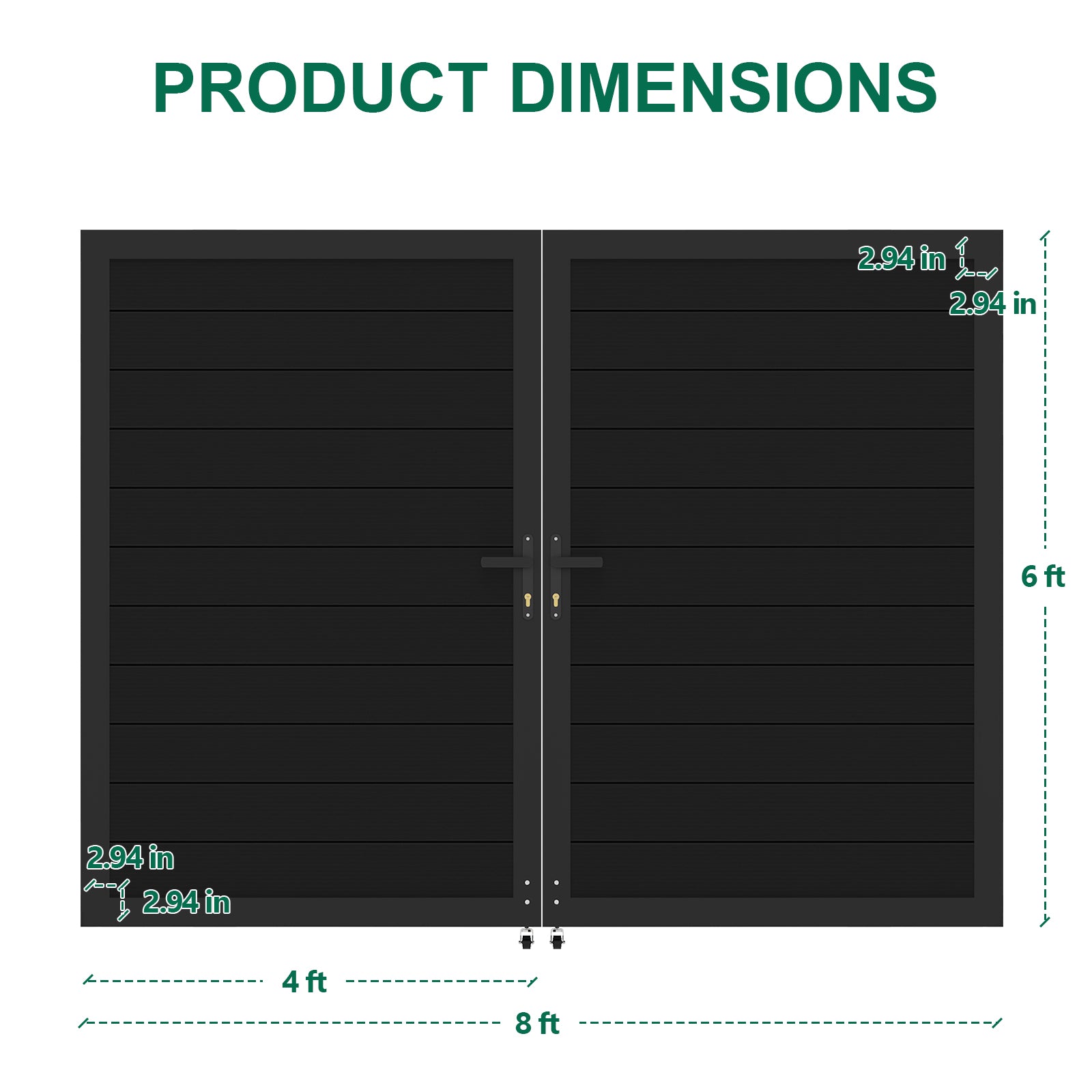 Upgrade your outdoor space with the Mondaria 6ft x 8ft Aluminum Double Swing Gate, engineered for homeowners seeking a modern, secure, and low-maintenance gate solution. Designed with a sleek horizontal-panel look and premium aluminum alloy structure, this double gate combines durability, style, and exceptional performance—perfect for yards, gardens, driveways, side entrances, and modern fencing systems.
