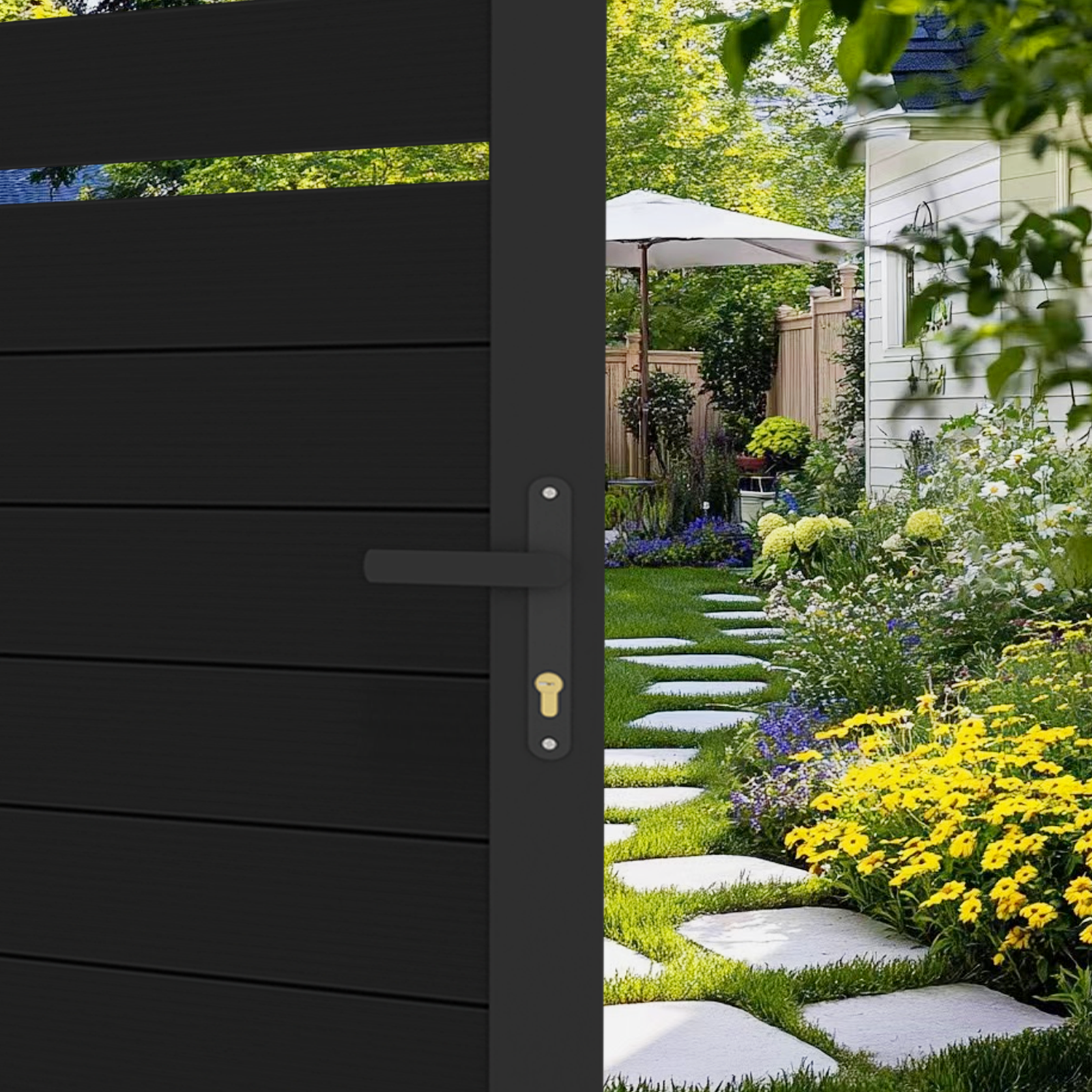 Made from 100% premium aluminum alloy, this gate is rust-proof, weather-resistant, and built for long-term outdoor use, making it ideal for driveways, backyards, side yards, and garden entrances throughout the United States. The semi-privacy design allows light and air to pass through while still maintaining a clean, private boundary.