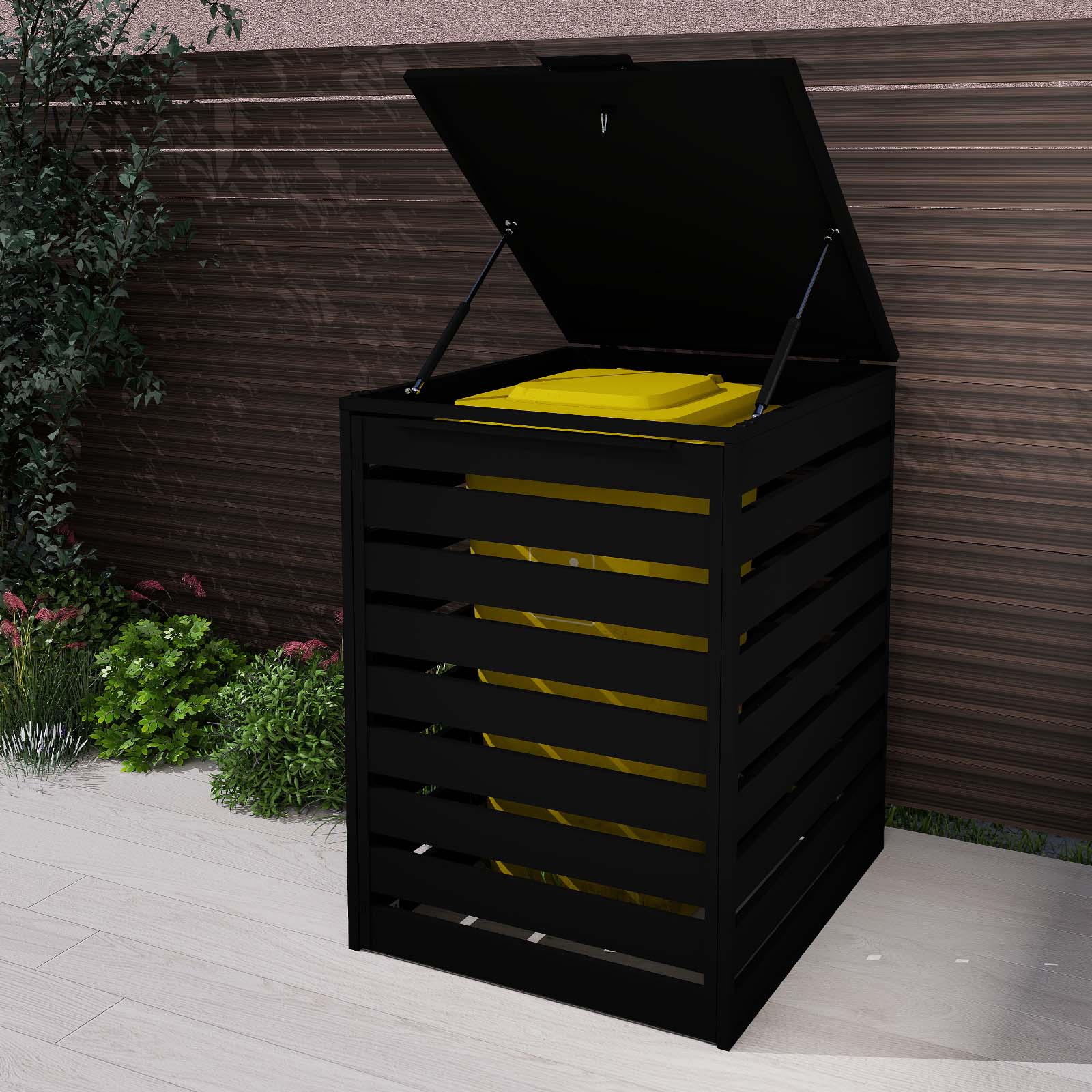 Pair this trash can enclosure with Mondaria aluminum or composite fencing and gates for a seamless, modern outdoor design.